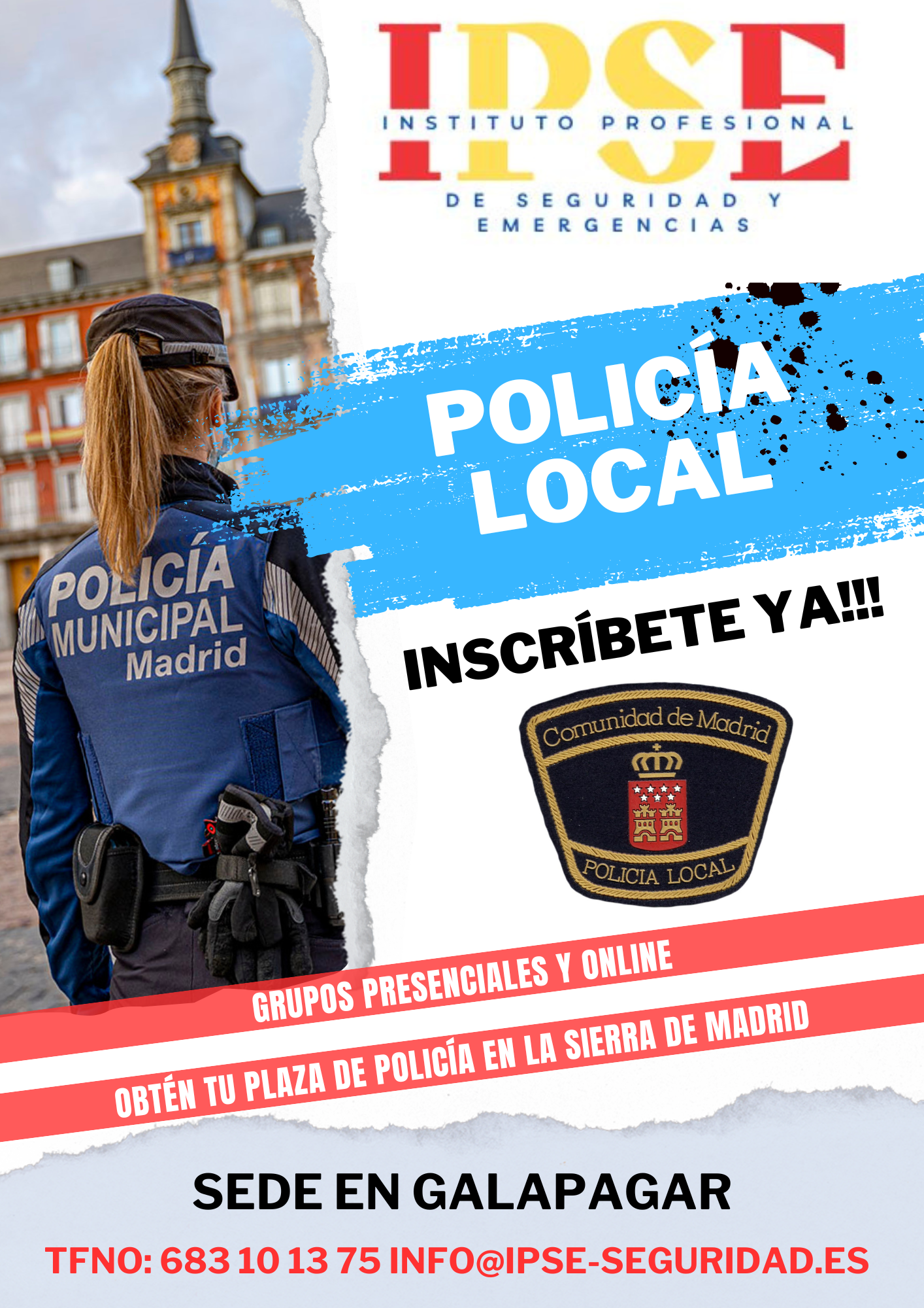 IPSE ofrece a los vecinos de Galapagar y de la Sierra Noroeste de Madrid, la preparación presencial y online para que no tengan que desplazarse a Madrid para opositar. FacebookInstagramX